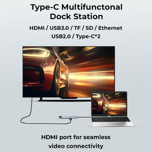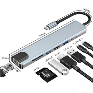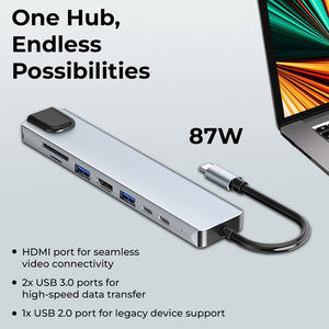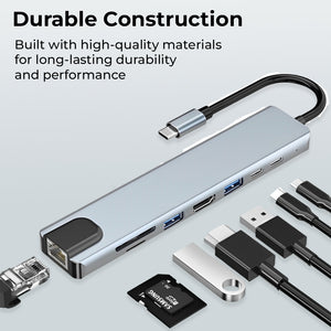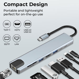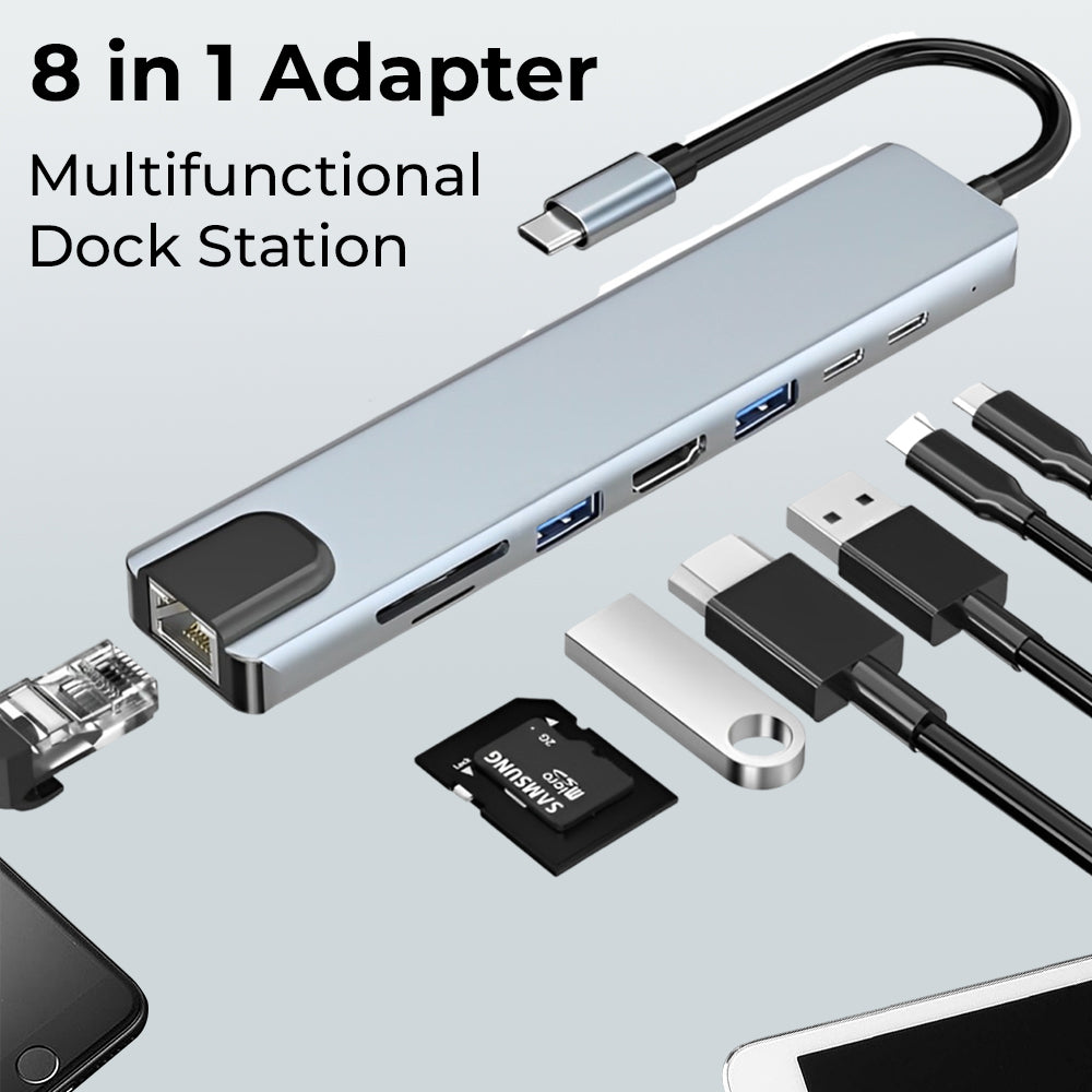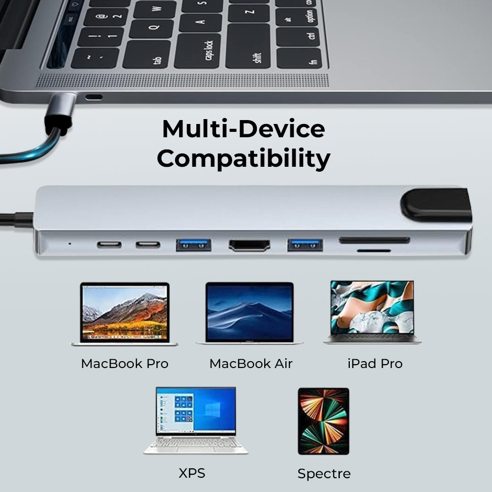 Comprehensive Connectivity: Enjoy 8-in-1 functionality, including 4K HDMI, FHD VGA, SD and micro SD card readers, 3 USB 3.0 ports, Gigabit Ethernet, and 100W pass-through power delivery. Enhanced Display Extension: Effortlessly extend your display to external monitors with support for 4K UHD and 1080P resolutions through the HDMI and VGA ports. Efficient Data Transfer: Seamlessly access and transfer data from various devices with the multi-port type C Hub, facilitating smooth and rapid data transfer. Reliable Ethernet Access: Benefit from secure and stable internet connectivity with the Gigabit Ethernet port, ensuring high-speed access up to 1000Mbps. Wide Device Compatibility: Enjoy the portability and versatility of this USB C dock station, compatible with a range of MacBook, iPad, and other USB-C supported devices, providing convenience and ease of use.