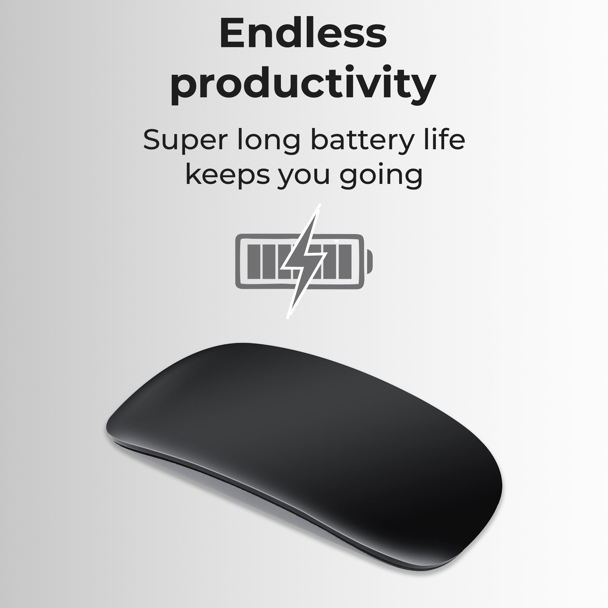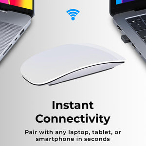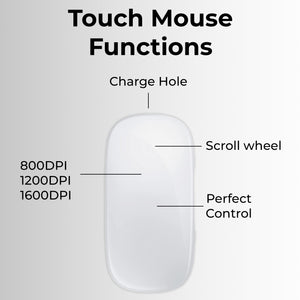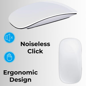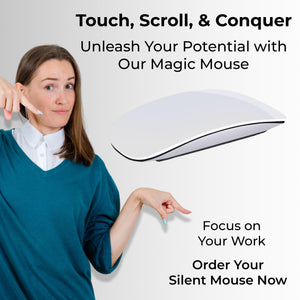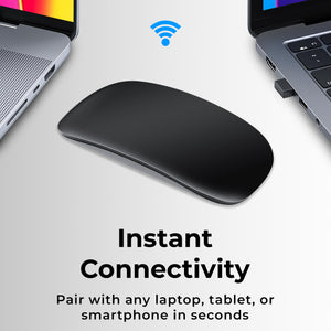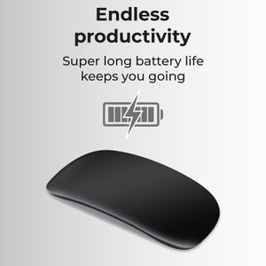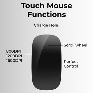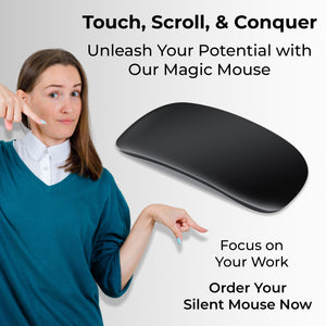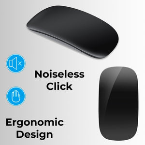 Effortless Connectivity: Say goodbye to cumbersome cables and dongles. Our Bluetooth-enabled mouse effortlessly pairs with your Mac desktop or laptop, offering a clutter-free and hassle-free setup. Enjoy the freedom to connect wirelessly and work with ease. Precision Scrolling: Experience smooth and precise scrolling with our touch-sensitive optical mouse. Its responsive touch scroll function lets you effortlessly glide through web pages, documents, and spreadsheets, ensuring a productive and enjoyable workflow. Ergonomic Design: Designed with your comfort in mind, this mouse boasts an ergonomic shape that fits comfortably in your hand, reducing wrist strain during long work hours. The matte black finish adds a touch of sophistication to your workspace. Long-lasting Battery: With a built-in rechargeable battery, you won't have to worry about constantly replacing batteries. A single charge provides extended usage, ensuring you stay productive without interruptions. Mac Compatibility: Tailored specifically for Mac users, this mouse is optimized for seamless integration with macOS. Its responsive performance and intuitive touch gestures make it a breeze to navigate through your Mac applications. Portable & Compact: The compact and lightweight design of this mouse makes it perfect for on-the-go professionals. Slip it into your bag or pocket, and you'll have a reliable companion wherever your work or travel takes you. Durable Construction: Built to withstand daily use, this mouse is constructed with high-quality materials to ensure long-term durability and reliability.