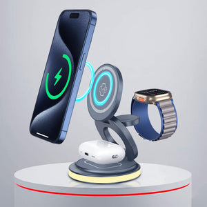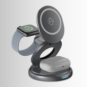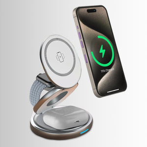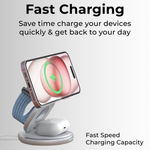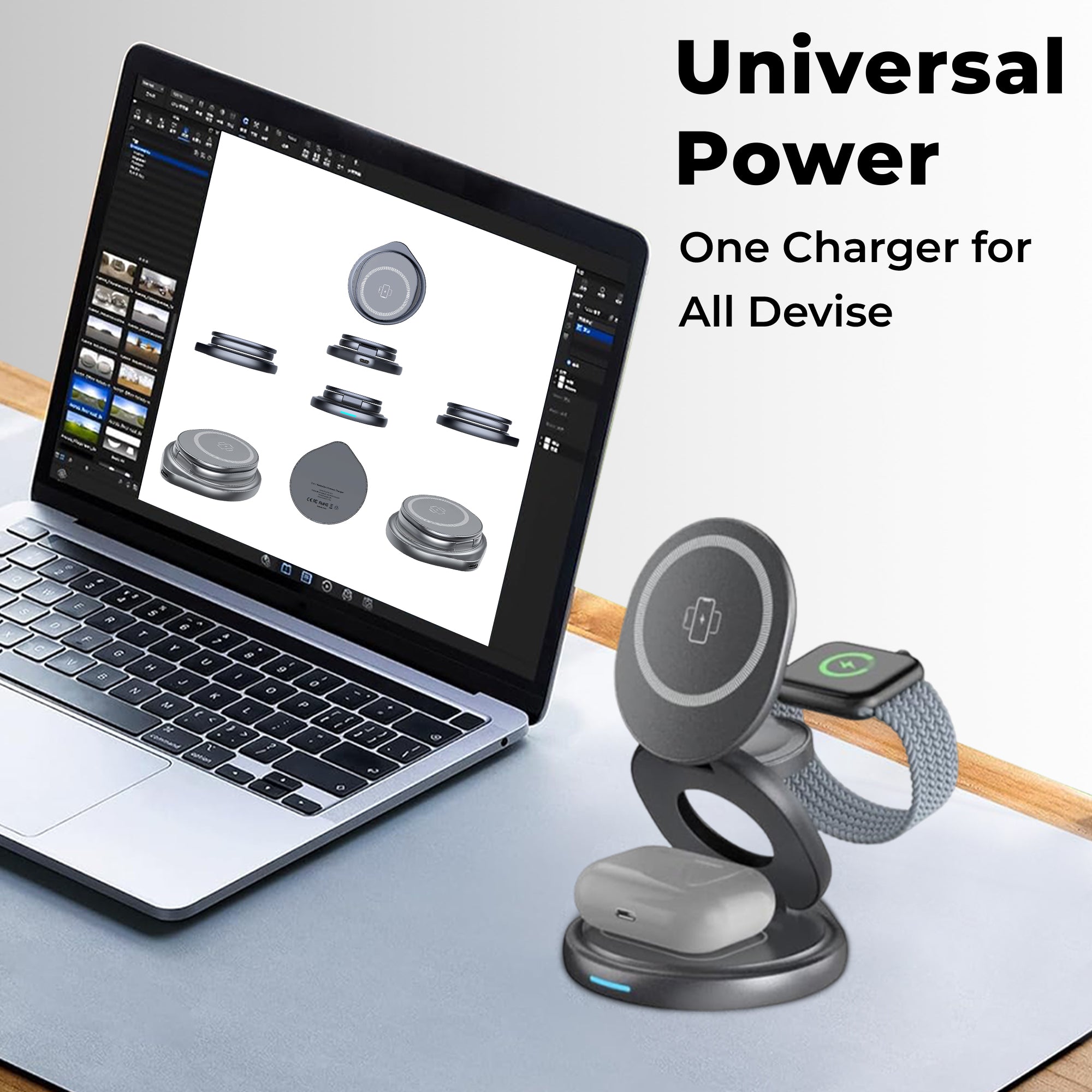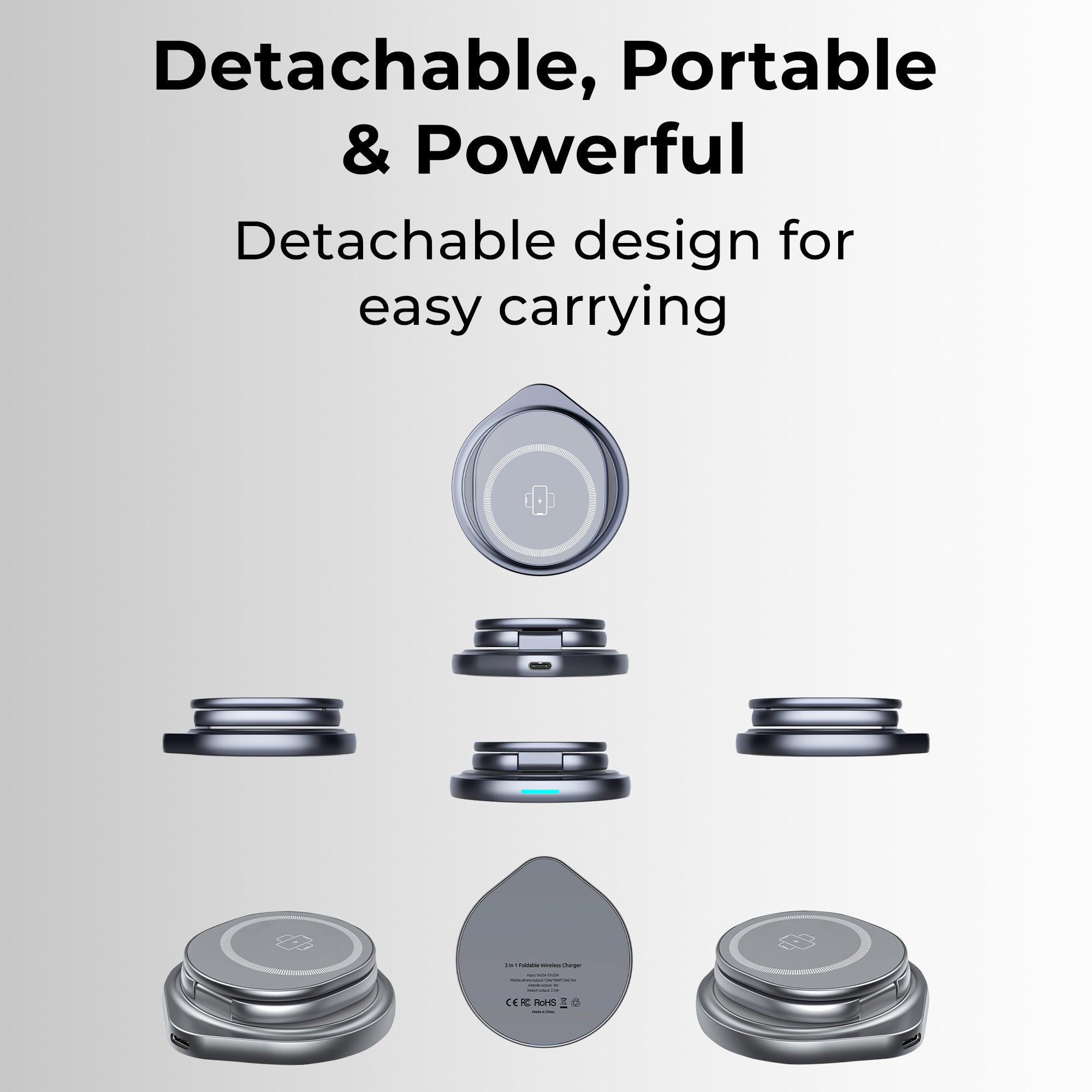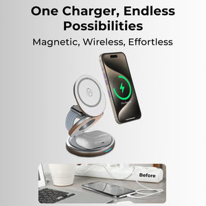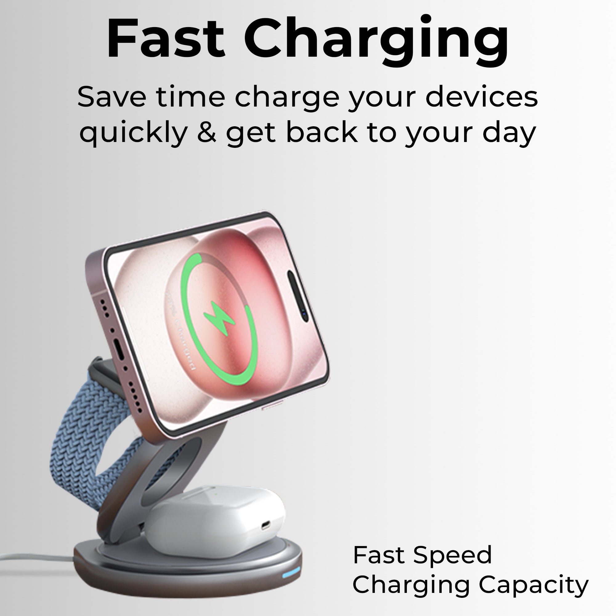 Effortless Charging for Multiple Devices: Glassology's 3-in-1 wireless charging station allows you to charge three devices simultaneously, ensuring safety and fast charging with its included QC3.0 adapter. Portable and Foldable Design: Designed for on-the-go lifestyles, this magnetic wireless charging station is foldable and compact, fitting seamlessly into your pocket or backpack. Easily fold it for storage when not in use. Comprehensive Safety Features: Built with intelligent protection algorithms, this charging stand provides multi-protection features including over-temperature, battery, and over-charge/discharge protection, ensuring safe and reliable charging every time. Efficient Magnetic Alignment: With strong magnetic adsorption, your iPhone automatically aligns for quick charging. Whether vertically or horizontally, enjoy optimal charging convenience with this versatile wireless charging station .