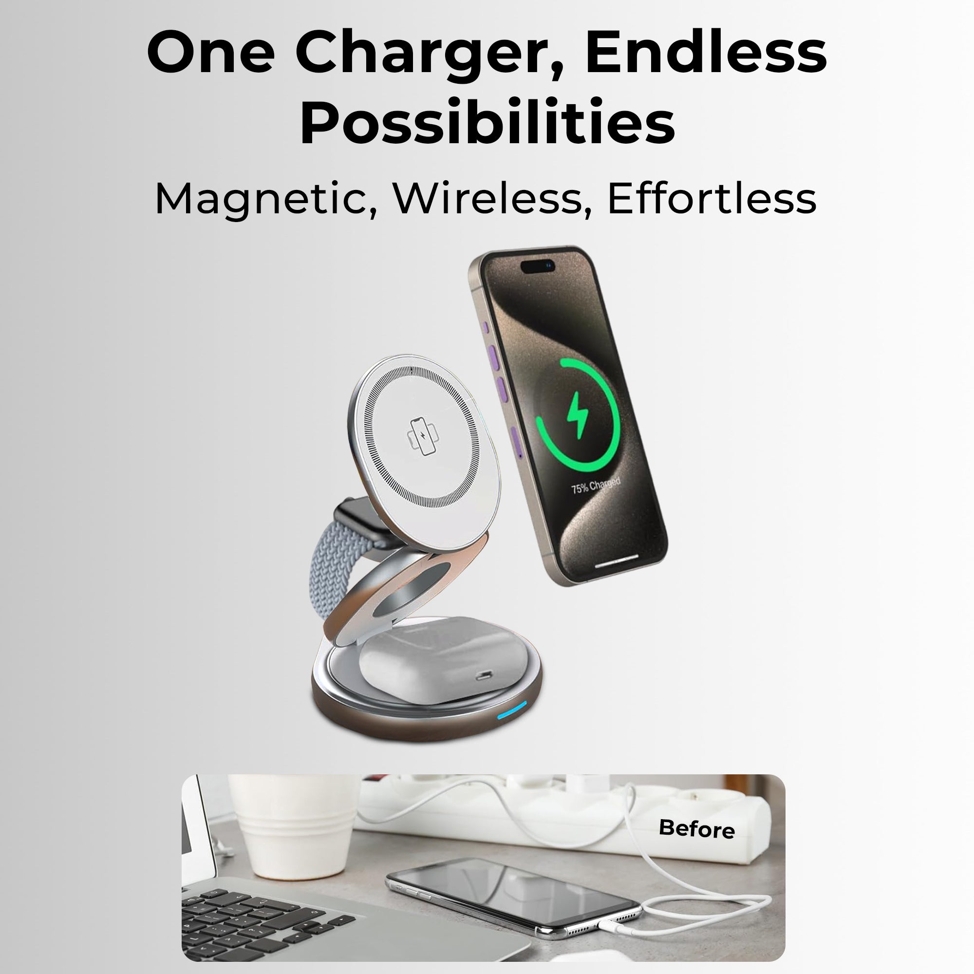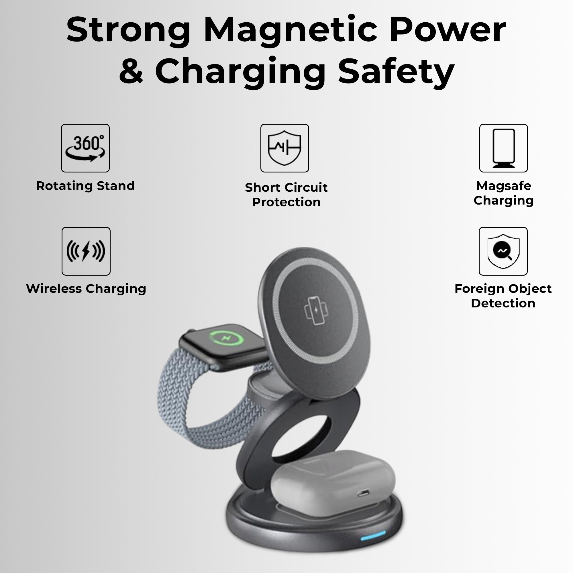 Glassology 3 in 1 Magsafe Charger 23W Wireless Charger, for iPhone 17/17 Air/17 Pro/17 Pro Max, 16/16 Plus/16 Pro/16 Pro Max, 15/14/13/12, Earbuds 3rd/2nd gen & Watch, Premium Material 360 Rotatable