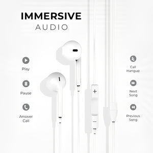 Universal 3.5mm jack ensures compatibility with a wide range of devices. Built-in microphone enables hands-free calling and voice commands. Compact in-ear design provides a snug fit and superior noise isolation. Constructed with durable polyurethane (PU) material for long-lasting reliability. Sleek white color adds a touch of style to your audio accessories.
