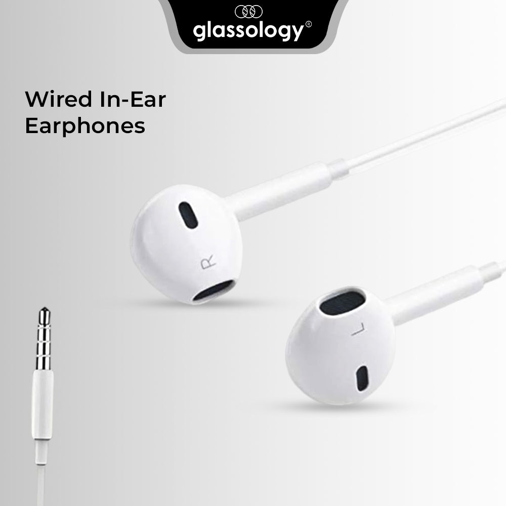 Glassology Wired Earbuds In Ear Headphones with 3.5mm Jack & Microphone Volume Control, High Bass Stereo Wired Earphones in Premium White with Universal Compatibility