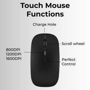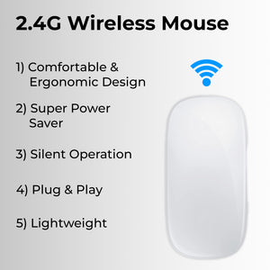 Strong Connection and Fast Tracking: Enjoy a reliable and fast connection that keeps you clicking all day long. This stylish wireless mouse offers essential features to enhance your productivity and deserves a place at your fingertips. Bluetooth 5.1 Connectivity: Say goodbye to dongles and embrace the efficiency of Bluetooth 5.1 wireless connectivity. This feature not only saves power but also ensures a longer and stronger connection, giving you a seamless and uninterrupted user experience. Smooth, Speedy, and Sensitive: The mouse's optical sensor boasts super-accurate tracking at 1600 DPI, precisely capturing every flick of your wrist. Experience smooth, speedy, and highly sensitive performance for tasks that demand precision. Thoughtfully Designed: With a sleek and ambidextrous design, this mouse is thoughtfully crafted to cater to both left-handed and right-handed users. Its ergonomic shape ensures comfort during extended use, reducing strain and enhancing productivity. Essential Companion: Elevate your Mac Desktop or Laptop experience with the Glassology Wireless Key Scroll Optical Mouse. It's not just a mouse; it's an essential tool that seamlessly integrates with your Mac ecosystem, adding style, convenience, and functionality to your daily computing tasks.